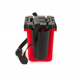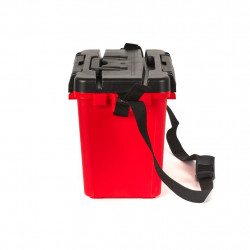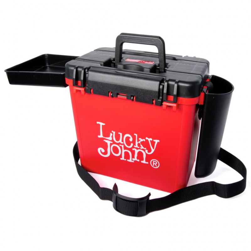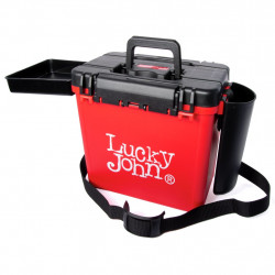 Plastikinė dėžė Lucky John žiemos žvejybai. Į ją galima sudėti ne tik žvejybos įrankius ir masalus, bet ir kitus reikalingus daiktus. Be to, ją galima naudoti kaip sėdimąją vietą.